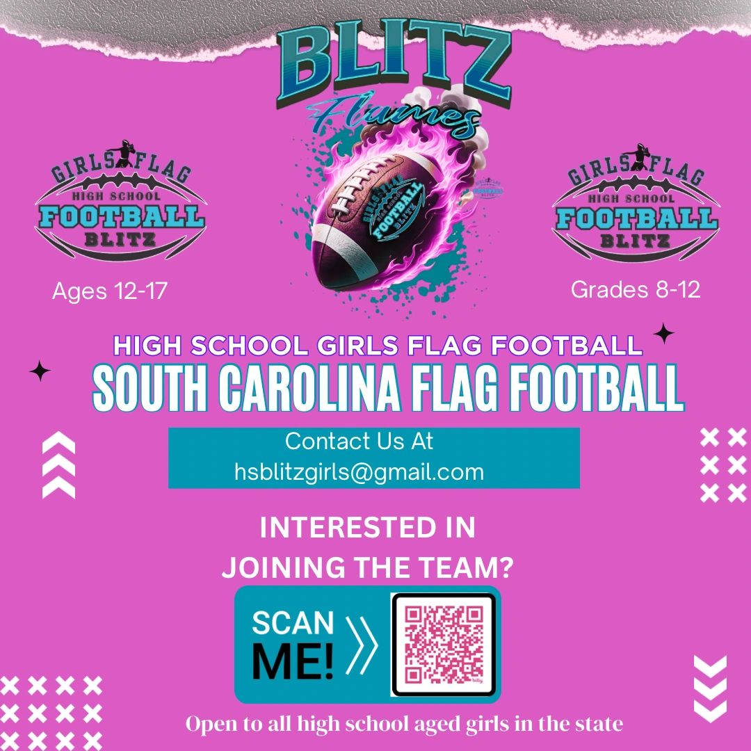 South Carolina High School Blitz Flag Football is proud to be the only high school–aged team in the state officially sanctioned by both USA Flag and NFL Flag. While other flag football programs exist in South Carolina, they primarily serve younger age groups. Our team stands alone in offering high school athletes a nationally recognized platform to compete and grow in the sport. By leading the way, Blitz is setting the standard for what girls’ flag football can become in South Carolina.